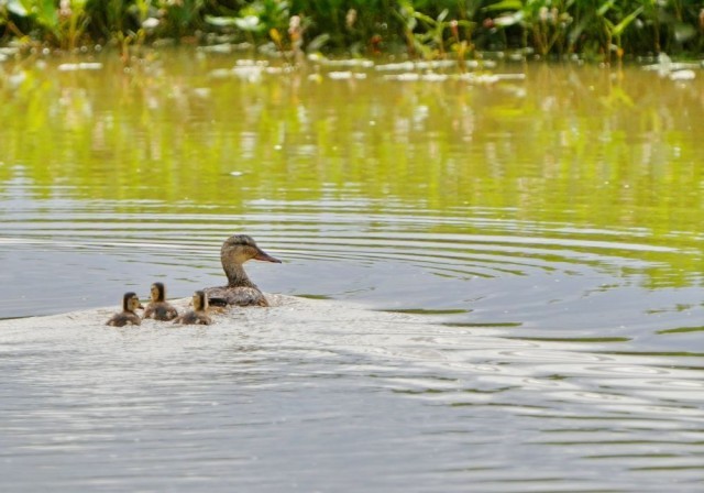 7月6日拍摄的拉鲁湿地水面上的野鸭。新华社记者 张汝锋 摄