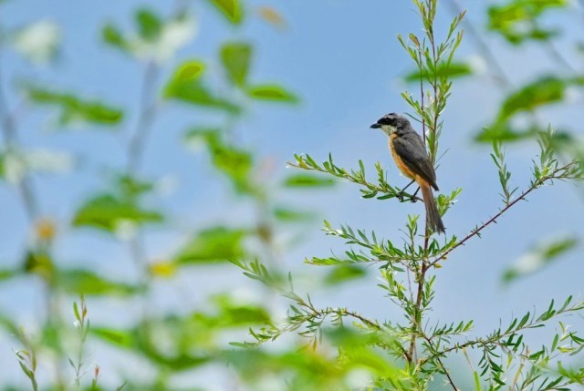 7月6日拍摄的拉鲁湿地上的灰背伯劳。新华社记者 张汝锋 摄