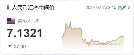 中新网7月25日电 据中国外汇交易中心网站消息,中国人民银行授权中国外汇交易中心公布,2024年7月25日银行间外汇市场人民币汇率中间价为:1美元对人民币7.1321元,上调37个基点。