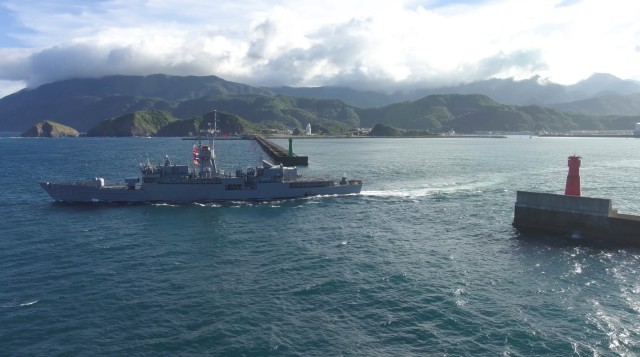 台军“诺克斯”级护卫舰出航。 图片来源 台湾地区防务主管部门