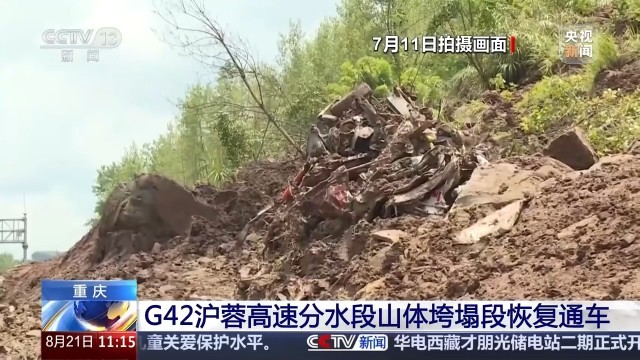 昨天(20日),经过一个多月的抢险施工,G42沪蓉高速分水段山体垮塌处解除断道交通管制,开放重庆主城至万州方向单道通行。