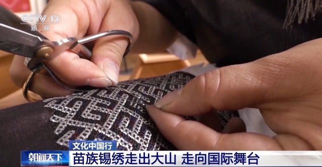 苗族锡绣非遗传承人 王亨石:按照他要尺寸的大小自己绣出来,绣出来以后寄给他,他自己再设计出作品,参展,走向国际时装周。我想生在大山里面几百年的锡绣,今天能走上这么高的国际舞台,我真的感到很高兴而且很自豪。