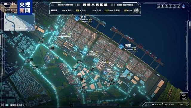此外,平台还深度整合港区内外海量数据,构建出高度仿真的虚拟环境,不仅能够精准预测港区进港箱量,促使资源前置优化配置,有效缓解道路拥堵,同时,该系统还支持全面洞察港区周边集卡行驶轨迹与停放模式,为交通管理部门提供详尽的数据支撑,助力其采取更加精准高效的交通疏导与停车管理策略,推动“一体化赋能”新治理。