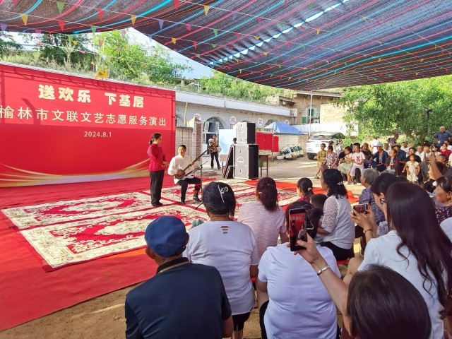 熊竹英在榆林市文艺下基层活动中为村民表演说书