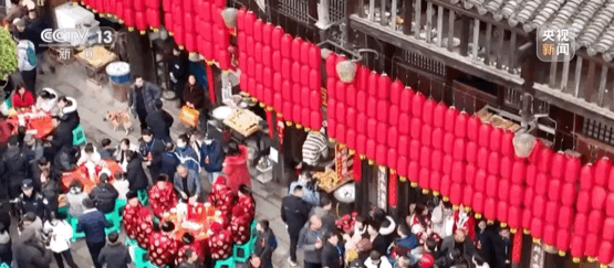 俗话说“民以食为天”,在春节这个举家团圆的氛围里,自然少不了美食的陪伴。鲜香四溢的刨锅汤,不仅是味蕾的享受,更寓意着丰收后的富足与喜悦。灌香肠、熏腊肉,独特的香料与传统工艺融合,让每一块腊味都饱含醇厚的家乡风味。这些腊味不仅是春节餐桌上的主角,更是游子心中对家乡年味的深深眷恋。江津中山古镇的千米长宴是春节期间的一大盛事。沿街摆满桌椅,一道道特色美食依次上桌,现场舞龙舞狮、杂耍、打盆等绝技表演接连不断,为长宴锦上添花。