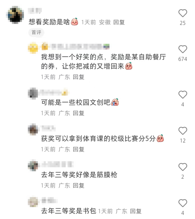 还有网友好奇比赛奖励是什么,评论区有网友回应称,“去年三等奖好像是筋膜枪。”