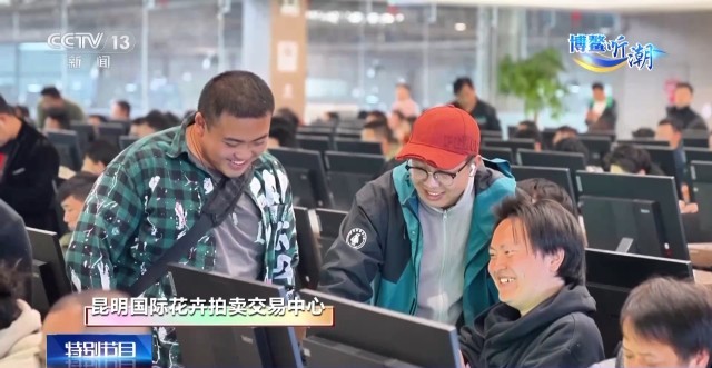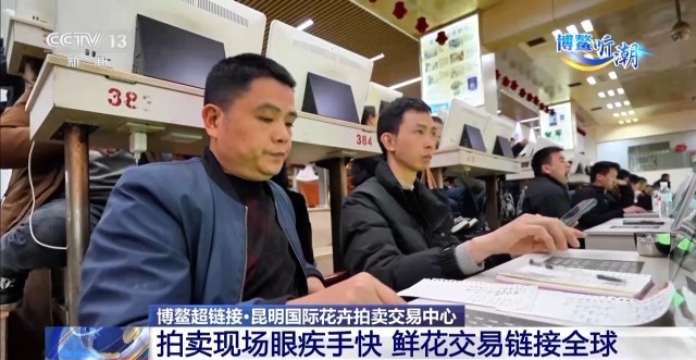 在昆明国际花卉拍卖交易中心里,每天都有数百万枝鲜切花通过拍卖销往世界各地。