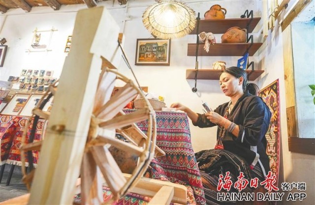 东方市八所镇北黎村,村民在店内织锦。海南日报全媒体记者陈元才 摄