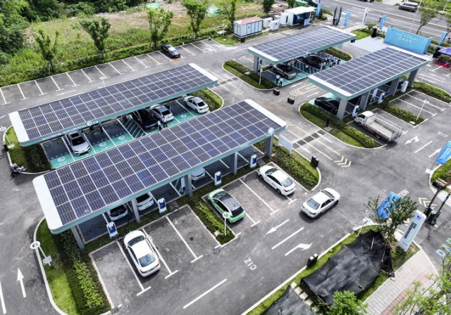 2024年6月6日,市民在重庆市两江新区明月湖超充示范站给新能源汽车充电后离开。新华社记者 王全超 摄