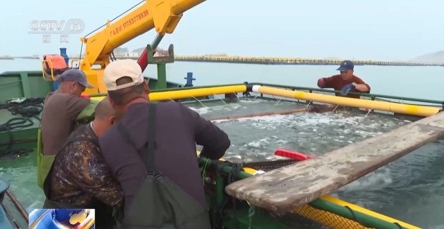 海上也是一派繁忙景象。经过一年多的养殖,福建连江投放到海里的2000万条大黄鱼苗已长到100克到200克,为了让它们更好地生长,渔民们这两天开始在养殖渔排上忙着给鱼苗“分家”。