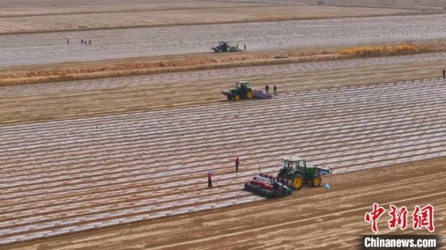 在阿克苏市柳源镇永兴村的万亩棉田播种现场,种植户易正贵对智能播种机赞不绝口:“现在棉花播种太省时省力了,采用智能播种机播种,一天就能播400余亩地,大概8到10天就能全部播种完。”