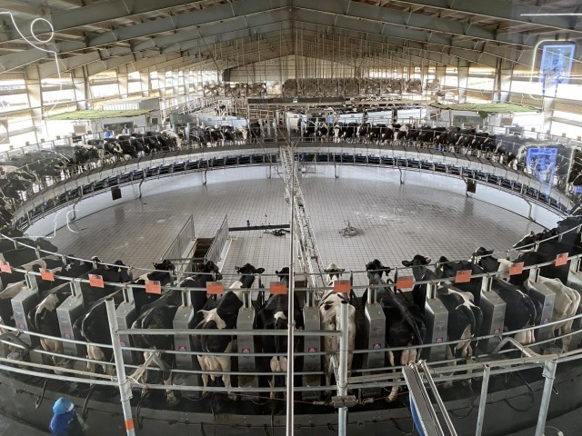 图为天瑞祥牧场全自动转盘式挤奶机。冶明伟摄