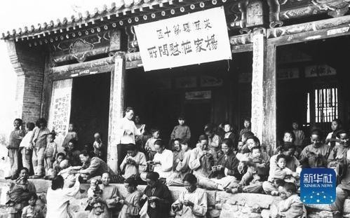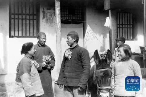河北平山南庄村刘汉兴参加了志愿义务兵,他的父母、妻子、弟弟备好毛驴送他入伍,临行时亲切叮咛。沙飞 摄