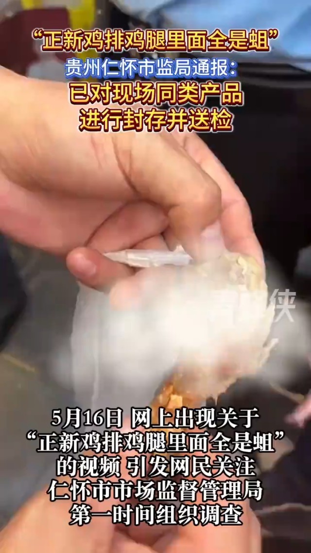 官方通报“正新鸡排鸡腿里面全是蛆”:已对现场同类产品封存送检