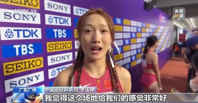 中国田径队队员 李玉婷:我觉得这个场地给我们的感觉非常好,因为它非常有弹性,现场观众非常非常热情。