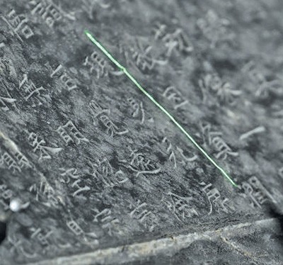 正在进行数字化扫描的《龙门二十品》之一。 新华社记者 李嘉南摄