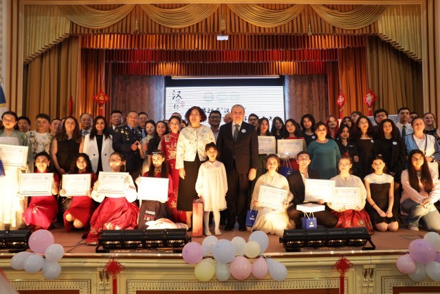 鲁梅大使在致辞中表示,中阿友谊源远流长,建交33年来,两国关系蓬勃发展,前不久双方建立全面战略伙伴关系,为深化合作注入新动力。语言是文明互鉴的桥梁,大学生“汉语桥”比赛在阿举办十年来,已成为两国人文交流的重要品牌,孔子学院培养的大批人才为促进民心相通作出了积极贡献。鲁梅大使还深情寄语阿塞拜疆青年,鼓励他们把握机遇,学好中文,通过中文了解真实立体的中国,成为中阿友好的使者和两国友谊的传播者。