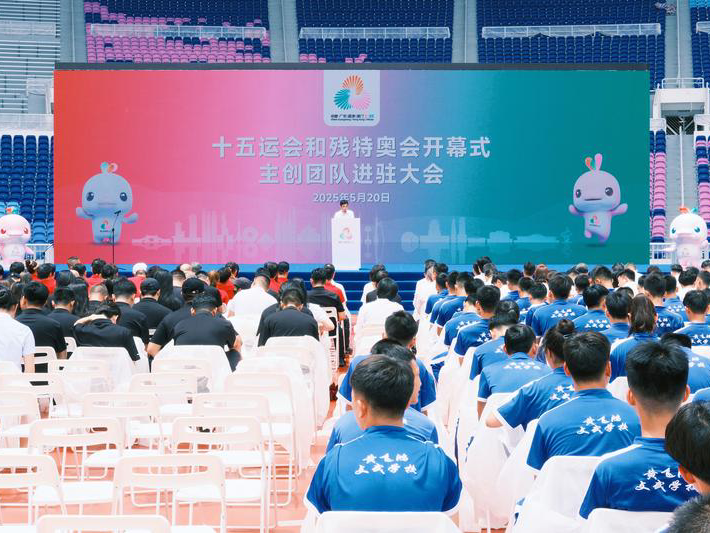 中国青年报客户端讯(吴婷婷 中青报·中青网记者 林洁)近日,十五运会和残特奥会开幕式主创团队进驻大会在广东省奥林匹克体育中心(简称“奥体中心”)体育场举行。十五运会开幕式主创团队进驻广东奥体中心,残特奥会开幕式主创团队进驻广州天河体育中心。