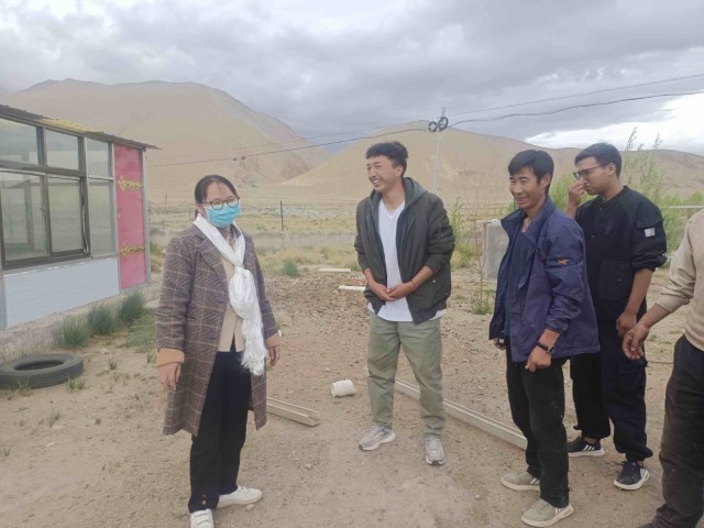 图为冯静(左一)在萨迦县调研