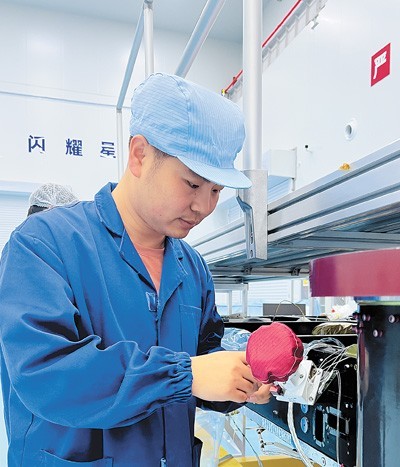 郭帅在检查卫星敏感器的连接部件。微纳星空公司供图