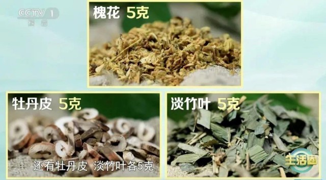 代茶饮:槐花、牡丹皮、淡竹叶各5克泡水喝即可。