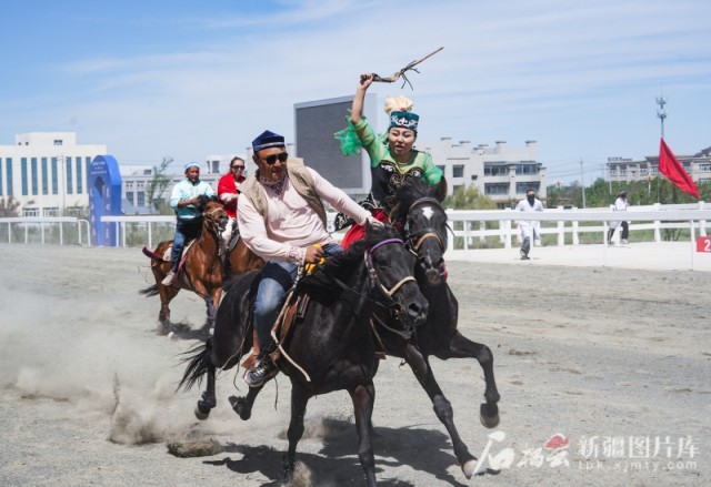 5月31日,中国·新疆第五届骆驼产业展暨全疆赛马大会在木垒哈萨克自治县激情启幕。活动现场在进行“姑娘追”表演。常谊谊 摄