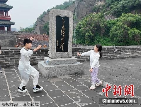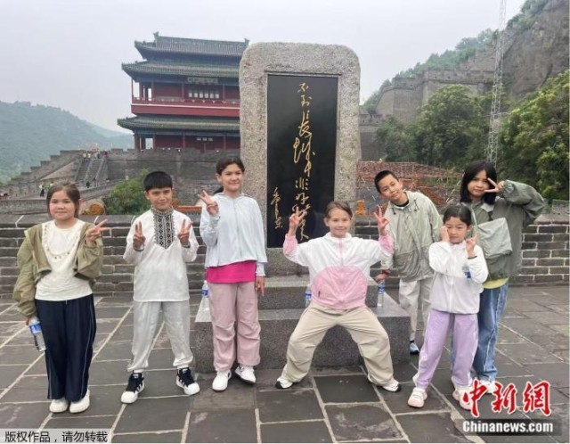 6月1日,来自新疆和田市的孩子们在居庸关长城。中新网记者 管娜 摄