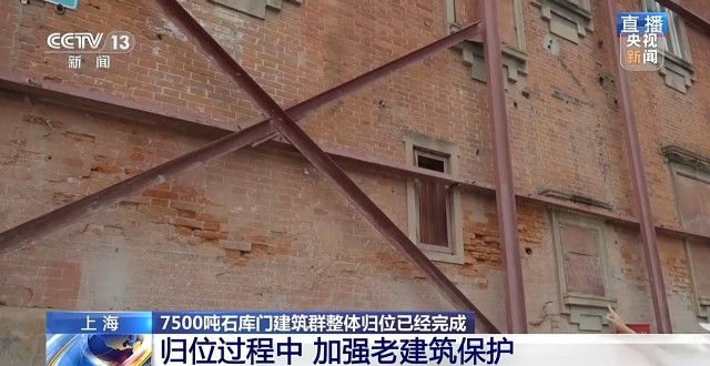 总台记者 宁婉婷:一走进张园东区,最醒目的连片石库门就是我身后的“华严里”。通过一段延时画面可以看到整个建筑归位的过程,从5月19日启动归位以来,“华严里”以日均10米的速度“行走”,现在,整体归位已经完成。