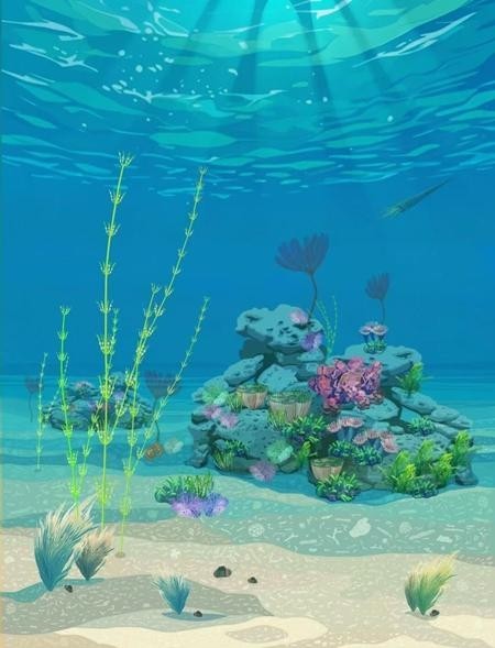 根据化石观察构建的奇迹塔里木轮藻生态景象插图。刘茜/绘图