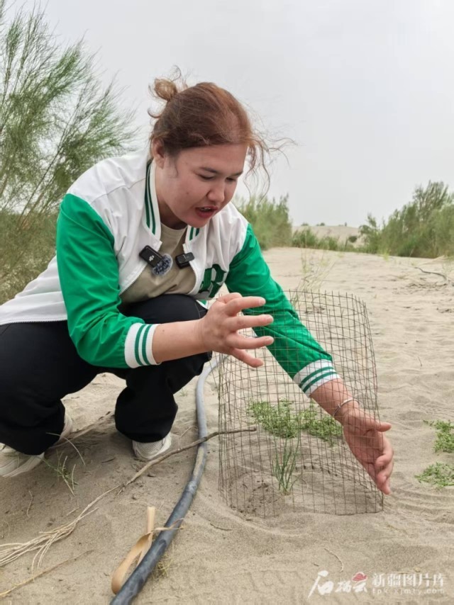 刚开始参与荒漠化治理时,“天天跑艾西曼”成为她的工作日常。“我每天过来教工人如何挖坑、栽苗、浇水。”努尔吉马力说,挖多深、多宽,浇多少水都有讲究。