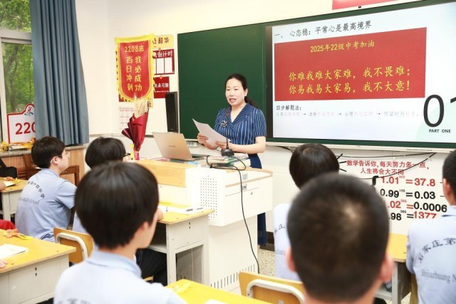 石家庄市第四十四中学老师在进行考前动员。(受访者供图)