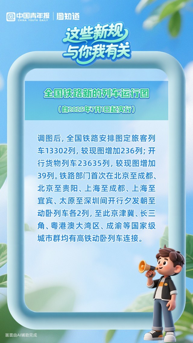 建立战略性矿产资源特殊保护制度;全国铁路安排图定旅客列车达13302列;细化个体工商户住所和经营场所登记规则……2025年7月,这些新规与你我有关,多图速览。