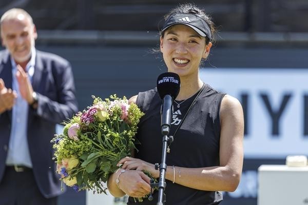 当地时间6月21日,德国柏林,2025WTA500柏林公开赛,获得女单亚军的中国选手王欣瑜在颁奖仪式上。视觉中国供图