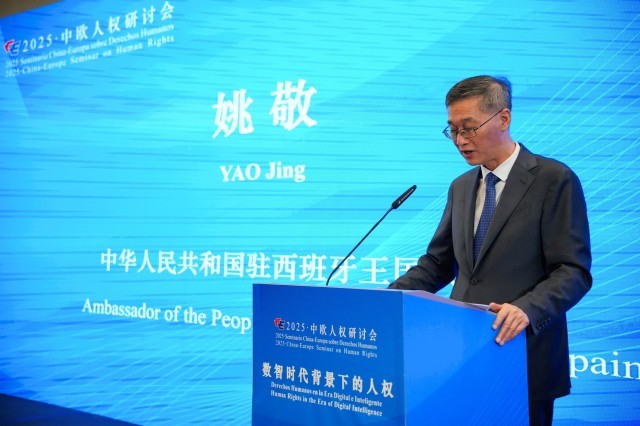 6月25日,“2025·中欧人权研讨会”在西班牙首都马德里举行。中国驻西班牙大使姚敬在开幕式上致辞。主办方供图