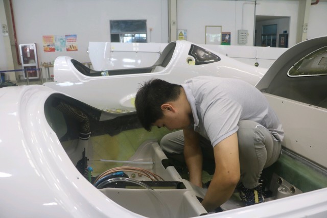 祁晨昊在机身内进行装配。中青报·中青网记者 王海涵/摄