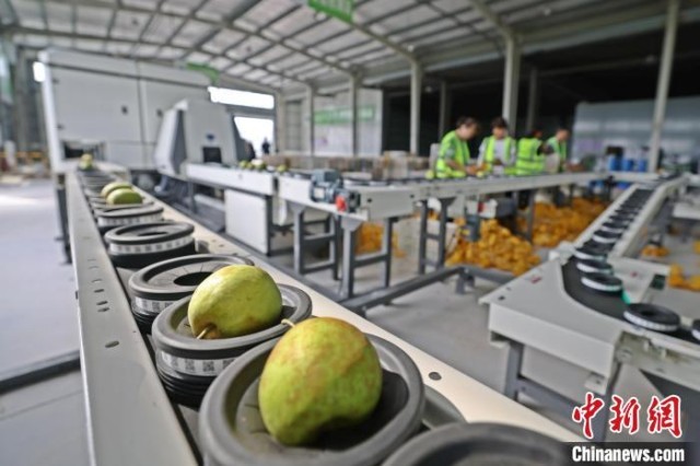 在镇上新建的百里洲砂梨智慧产业园,园内的精细化检测分选设备令人眼前一亮:自动化分选线上,每颗砂梨都要通过“X光体检”,重量、糖度、黑心等内部指标合格方能进入包装环节。