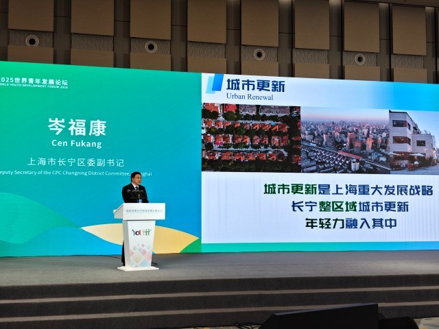 7月16日,2025年世界青年发展论坛绿色消费与可持续发展主题论坛在江苏苏州举办,上海市长宁区委副书记岑福康发表主旨演讲。中青报·中青网记者 田嘉硕/摄