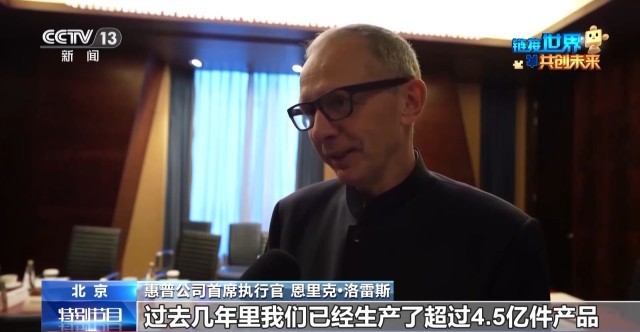惠普公司首席执行官 恩里克 洛雷斯:我们在中国有数百家合作伙伴和协作者。过去几年里,我们已经生产了超过4.5亿件产品,这是一个非常可观的数字,也意味着我们需要许多合作伙伴的协助。