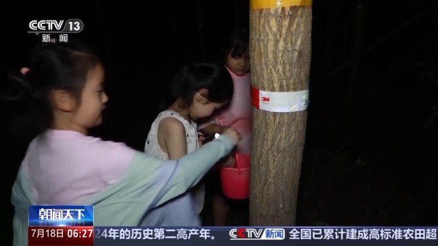 距离冰雪小镇不远的水上乐园同样也是热闹非凡。在这里,各种造型奇特的水上滑梯、大型水寨随处可见。白天与冰雪亲密接触,到了晚上也没闲着。林间闪烁的手电筒光束与孩子们的欢笑声交织,在一家金蝉养殖基地,孩子们手提小桶,在工作人员指导下辨认幼虫踪迹,近距离观察金蝉生长环境,捕捉金蝉。