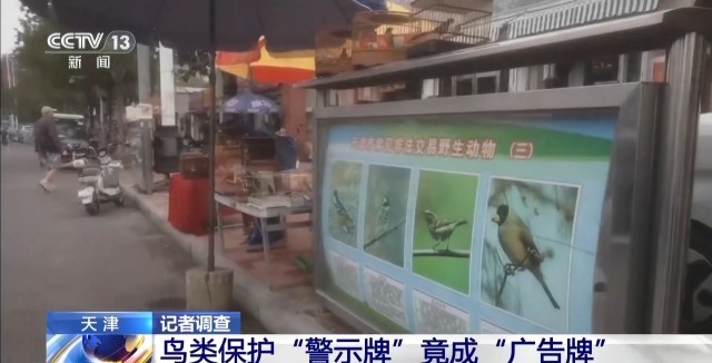 在这个市场,记者看到还有一些鸟贩把摊位摆到禁止销售野生鸟类的宣传栏旁,甚至把警示牌上的保护鸟类图片当成推销的广告牌。