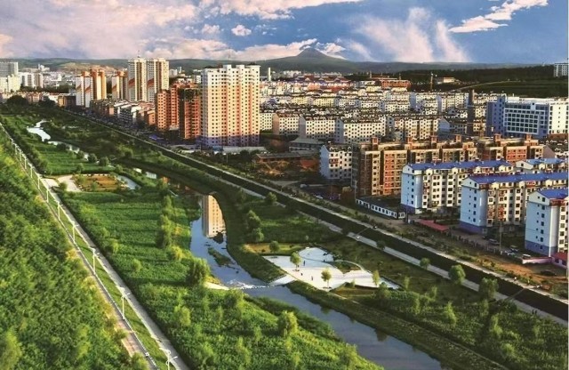 长白山巍峨如黛,布尔哈通河蜿蜒似绸。