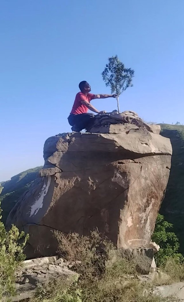 “这是我为自己种的‘纪念树’。”站在崖边,郝雷黝黑的脸庞上汗珠闪动,“就盼着这些树苗能长得又高又壮,让每个路过的人都能一眼瞧见!”
