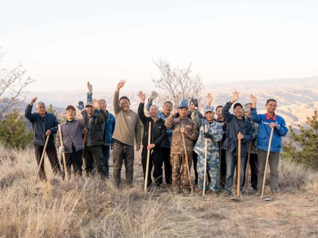 在宜川县,与“悬崖造林队”并肩作战的还有其他8支专业造林队,他们共同为黄河沿岸披上葱郁“绿装”默默奉献着。