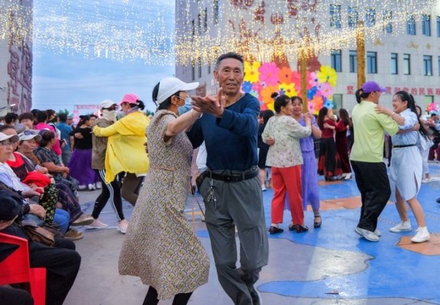 2025年7月9日,在内蒙古呼伦贝尔市鄂温克族自治旗辉苏木,游客在“伊德喜”夜市上跳舞。新华社记者 马金瑞 摄