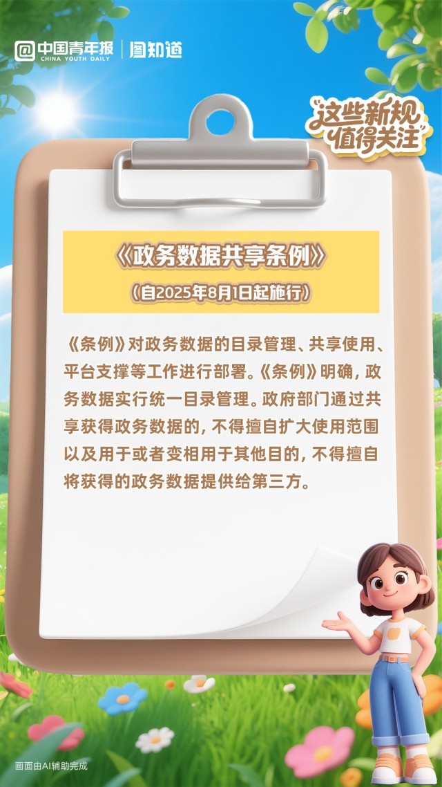 政务数据实行统一目录管理,新增两个职业病类别,现金买金超10万元需上报……2025年8月这些新规值得关注,多图速览。