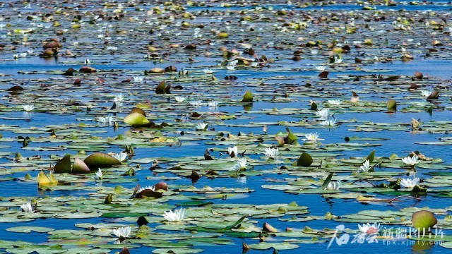 走进莲海世界景区,大片野生睡莲与环湖芦苇荡傍水而生,勾勒出“水上江南”和“水上草原”的诗意美景。立于水上观景平台,娇艳的睡莲、碧蓝的湖面、起伏的沙丘、连片的芦苇交相辉映,令人恍若置身水墨画卷。