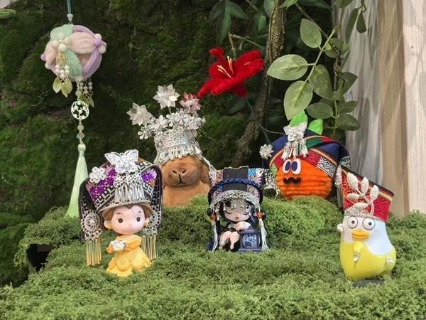 “瓯骆工坊”制作的苗族、壮族、彝族的玩偶帽子。受访者供图
