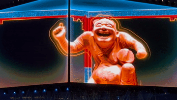 8月7日,吉祥物“蜀宝”和“锦仔”在开幕式上。新华社记者 江宏景 摄