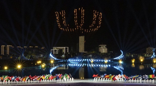8月7日,演员在开幕式上表演。新华社记者 梁旭 摄