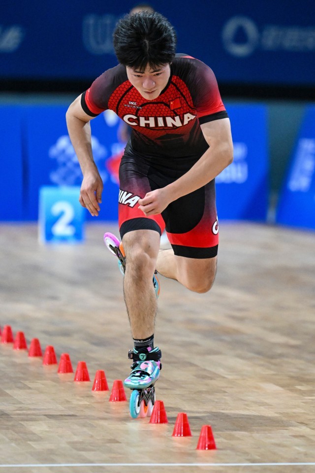 中国轮滑选手张颢在本届世运会夺得两枚金牌